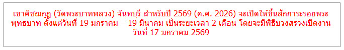 เขาคิชฌกูฏ ทุกๆปี ในช่วงที่เปิดให้มีการขึ้นนมัสการรอยพระพุทธบาทนั้น จะมีผู้คนจากทั่วทุกภาคของประเทศไทย ต่างเดินทางมายังยอดเขาแห่งนี้เป็นจำนวนมาก เพื่อที่จะมาสักการะแผ่นหิน ซึ่งเชื่อกันว่าพระพุทธองค์ทรงมาประทับรอย พระบาทไว้ ด้วยความศรัทธาและความเชื่อในอานิสงส์ที่แรงกล้า ว่ากันว่าใครที่ได้นมัสการรอยพระพุทธบาทแห่งนี้ถือเป็นสิริมงคลแก่ครอบครัวและชีวิต ขออะไรจะได้อย่างนั้น